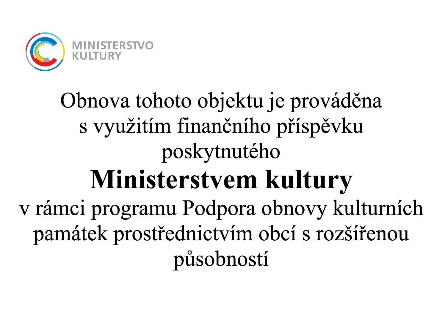 Obnova tohoto objektu je prováděna s využitím finančního příspěvku poskytnutého Ministerstvem kultury v rámci programu Podpora obnovy kulturních památek prostřednictvím obcí s rozšířenou působností.